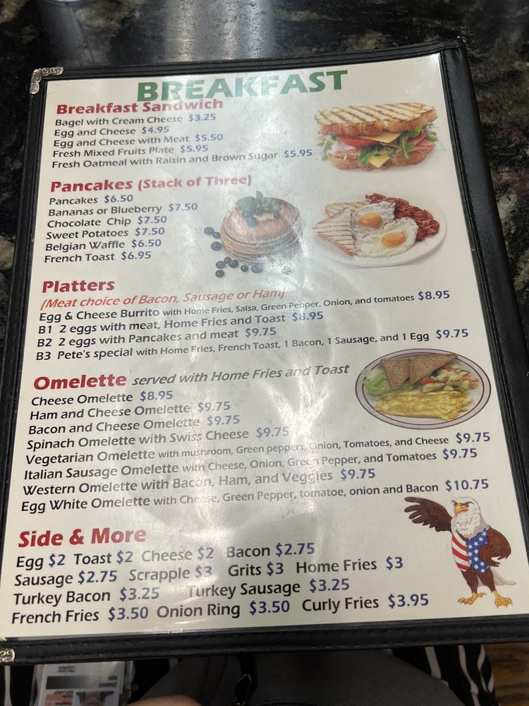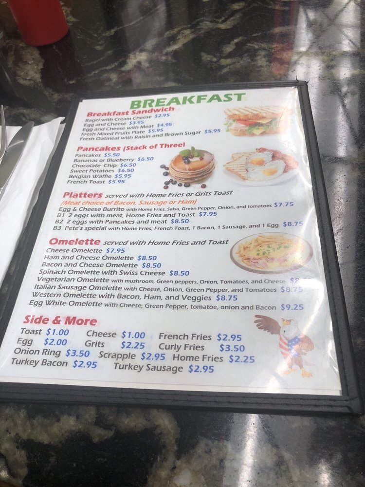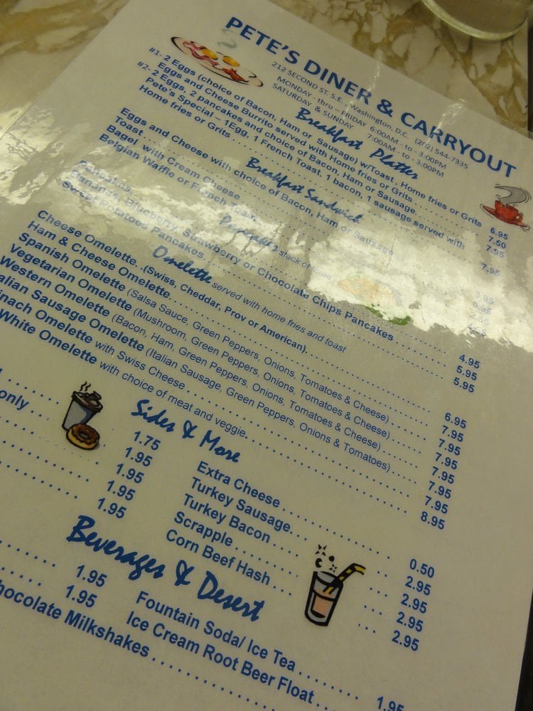 Located in Capitol Hill, Washington, DC, Pete's Diner is a cozy neighborhood spot with a divey, casual atmosphere. Specializing in breakfast and brunch, Pete's Diner offers a variety of options including vegan and vegetarian choices. Customers praise the quick service, generous portions, and reasonable prices, making it a popular choice for locals and visitors alike. The menu features classic diner fare like pancakes, eggs, bacon, and sandwiches, all cooked up on a large grill. With sidewalk seating and friendly staff, Pete's Diner provides a comfortable dining experience. Whether you're in the mood for a hearty breakfast or a quick lunch, Pete's Diner is a must-visit spot for delicious comfort food in the heart of Capitol Hill.